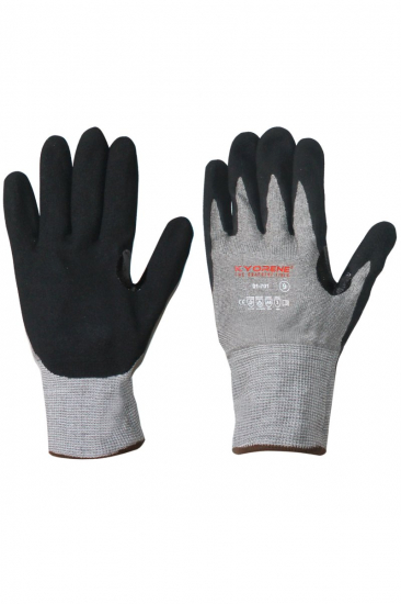 Heavy-duty handschoenen KYORENE-voering 13G, geventileerde rug, gebreide manchet, met nitrilcoating – Kenmerken: robuust – Sterke punten: comfort, grip, gevoeligheid, precisie, snijvast – Toepassingsgebieden: hantering en montage van scherpe, droge of iets olieachtige voorwerpen.