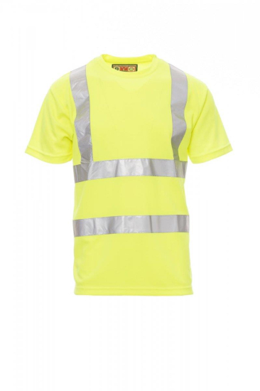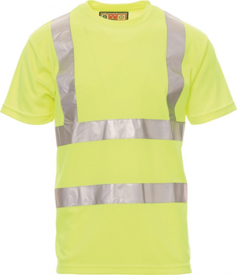 T-shirts met ronde hals en korte mouwen met hoge zichtbaarheid, met reflecterende strepen, stiksels van de hals afgedekt.