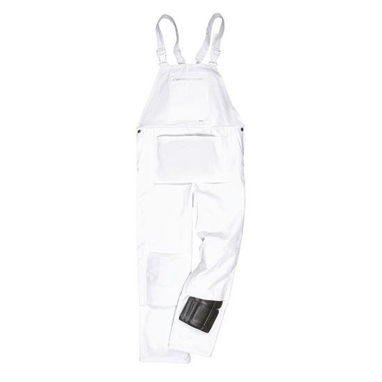 Gemaakt met 100% voorgekrompen katoen om een goede bescherming te bieden tegen verfspatten. Met onder andere een zak met rits, een grote opgestikte voorzak, knie-, heup – en duimstokzakken, elastische achterzijde en kunststof gespen.
