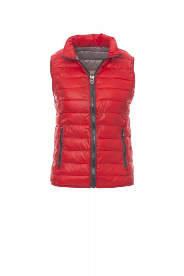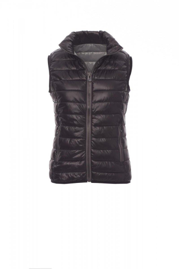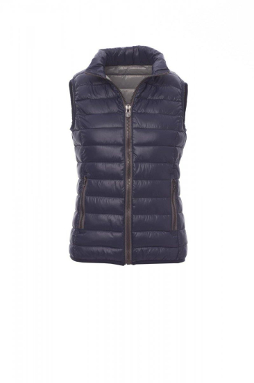 Damesjas, comfort-fit, met kunststof rits van 8 mm met metalen runner, smalle boorden aan de zoom en mouwen, twee buitenzakken. Gewatteerd met polyester met donseffect, drie binnenzakken.