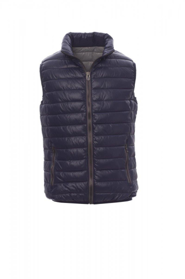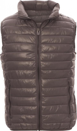 Herenjas met kunststof rits van 8 mm met metalen runner, smalle boorden aan de zoom en mouwen, twee buitenzakken. Gewatteerd met polyester met donseffect, drie binnenzakken.