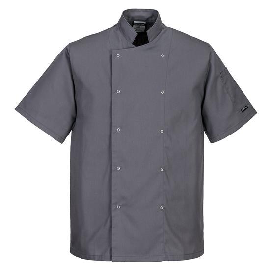 Deze moderne en geraffineerde jas zal voldoen aan de eisen van iedereen in uw team. Deze lichtgewicht en duurzame stof houdt u koel en zorgt ervoor dat u er op uw best uitziet, was na was. Uitgevoerd met drukknoopsluting en een handige zak op de mouw.