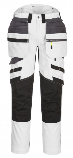 De DX4 Hi-Vis klasse 1 met afneembare holster zakken, is voorzien van doelgerichte 4X-stretchdoek om een maximale bewegingsvrijheid tijdens het werk te garanderen. De broek heeft een hoge tailleband aan de achterkant met elastiek aan de zijkant, waardoor bescherming in alle werkposities wordt gegarandeerd. Voorgebogen, verstelbare kniestukzakken, ruime voorzakken en multifunctionele dijbeenzakken met rits voor veilig opbergen van telefoon, pennen en gereedschap. Drievoudig gestikt voor maximale duurzaamheid.