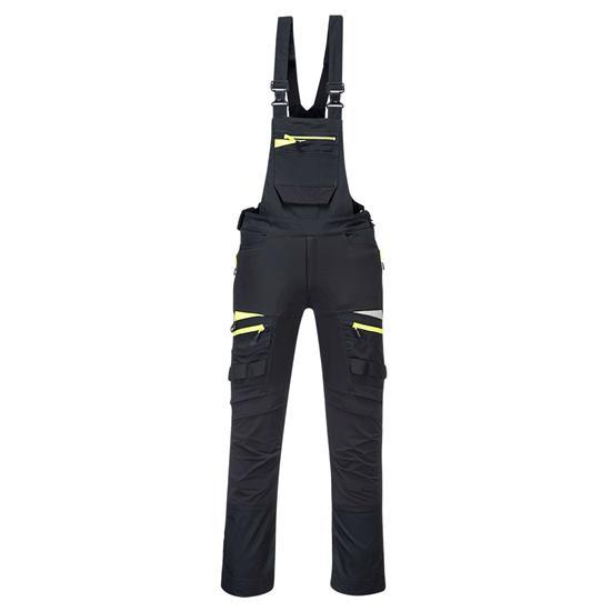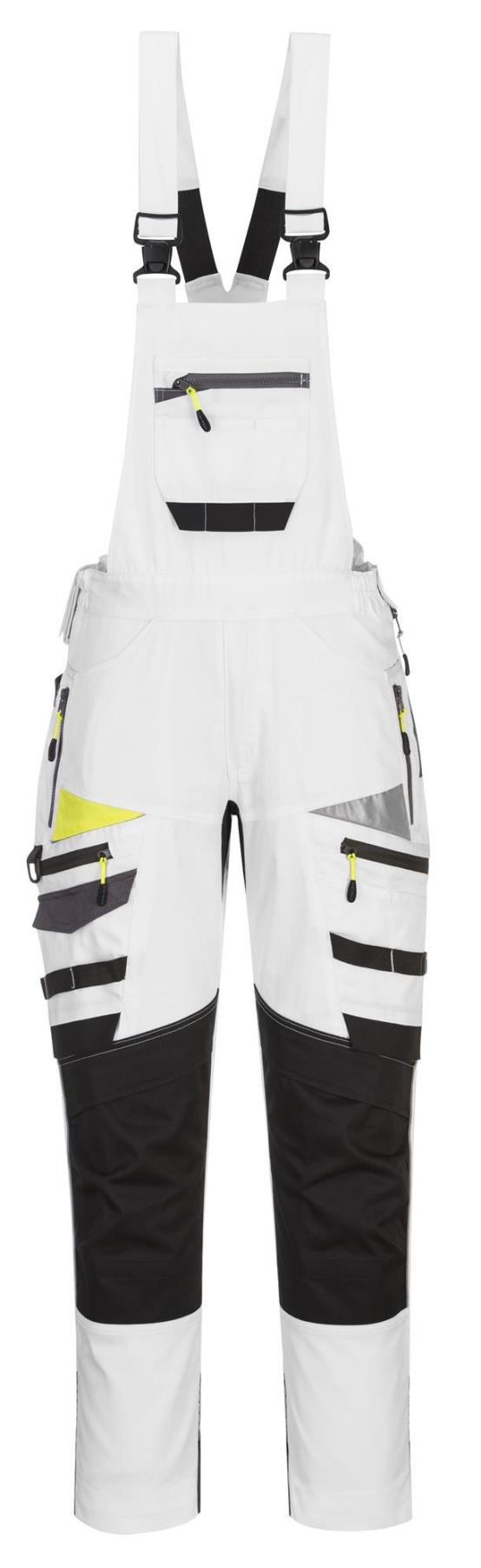 De DX4 slim fit werk Bib is deskundig ontworpen voor uitzonderlijk comfort, flexibiliteit en bescherming. Gemaakt van dynamische 4X stretch stoffen die zorgen voor meer bewegingsvrijheid. Geproduceerd met meerdere innovatieve kenmerken, waaronder contrasterende panelen, reflecterende biezen, multifunctionele zakken, verlengbare zomen, voorgebogen zakken met verstelbare kniestukken en verstelbare schouderriemen. De broek heeft een hoge tailleband aan de achterkant met elastiek aan de zijkant, waardoor bescherming in alle werkposities wordt gegarandeerd.