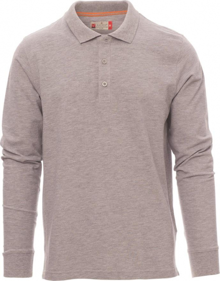 Herenpoloshirt met lange mouwen met 3 bijpassende knopen met parelmoereffect, ribkraag en ribboorden aan de mouwen, zijsplitten, verborgen stiksels bij de kraag met contrasterende band, elastische naden, versterkingsband aan de zijkant, band aan de binnenkant van de nek.