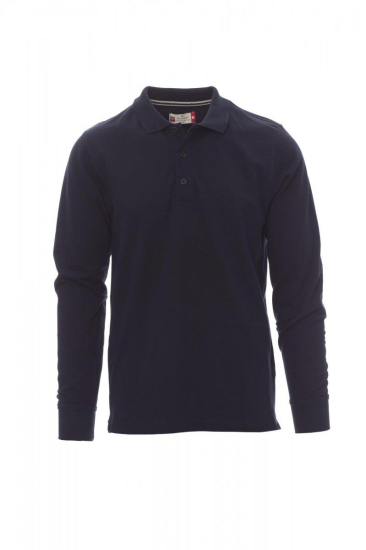 Herenpoloshirt met lange mouwen met 3 bijpassende knopen met parelmoereffect, ribkraag en ribboorden aan de mouwen, zijsplitten, verborgen stiksels bij de kraag met contrasterende band, elastische naden, versterkingsband aan de zijkant, band aan de binnenkant van de nek.