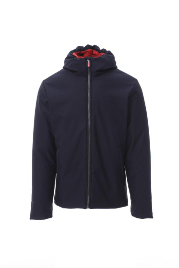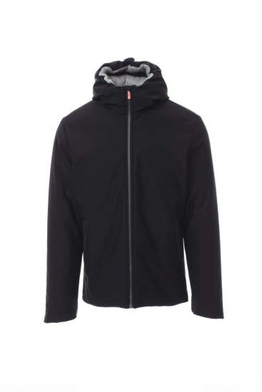 WP/MM 8000 MVP/GR 3000 Gevoerde korte herenjack met kap, SBS-rits over de hele lengte in plastic met metalen “autolock”-runner, twee zakken aan de buitenkant met rits, een binnenzak met rits.
