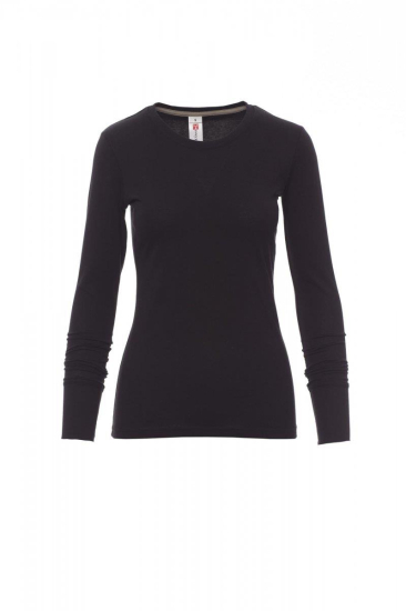 Heren-T-shirt met lange mouwen en ronde hals, met afgezette geribde halsrand van 1,5 cm van een mix met spandex met stiksel aan de buitenkant, contrasterende versterkingsband van schouder naar schouder zichtbaar aan de binnenkant van de nek, elastische naden, zijnaden.