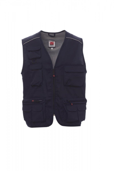 Zomerbodywarmer, ritssluiting, systeem met meerdere zakken voor met omkeerbare badgehouder, reflecterend pipingband bij de schouders en op de rug, ruime zak achter. Binnenzijde: dry-tech voering in contrasterende kleur, open voor eenvoudiger bedrukken en borduren.