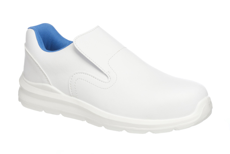 Deze geheel metaalvrije dames trainer veiligheidsschoen is voorzien van veters en vervaardigd van een gemakkelijk te reinigen microfiber en is voorzien van een antibacteriƫle voering en voetbed. De schoen heeft een gemakkelijk te reinigen oppervlakte waardoor de kans op vervuiling wordt verkleind. Perfect voor de voedings-, farmaceutische-, catering- en horecasector.