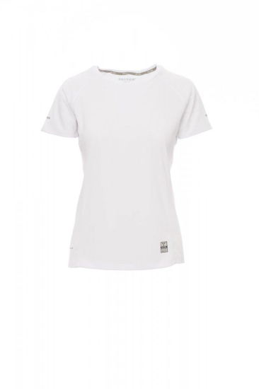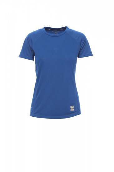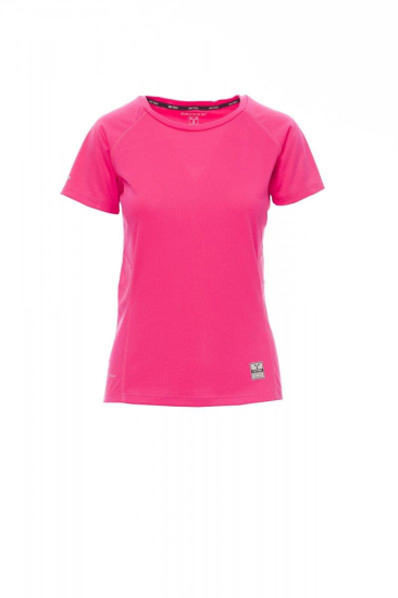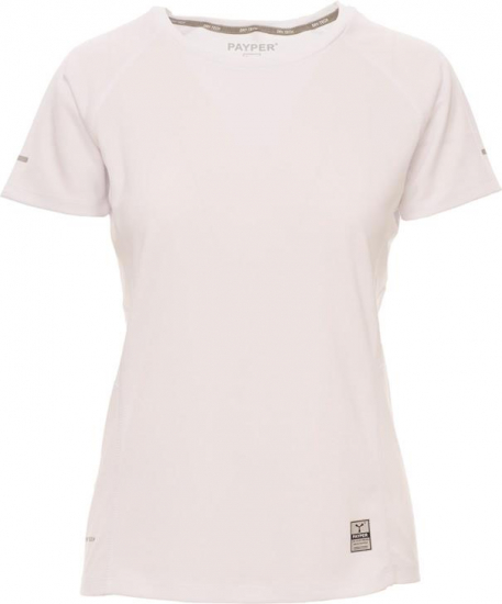 Nauwsluitend technisch/sportief dames-T-shirt met raglanmouwen, dubbel gestikte zijnaden voor een betere pasvorm, aangezette onderrand en langer achterpand, reflecterend inzetstuk op de mouwen en aan de achterkant van de kraag, contrasterende band in de nek, transferlabel.