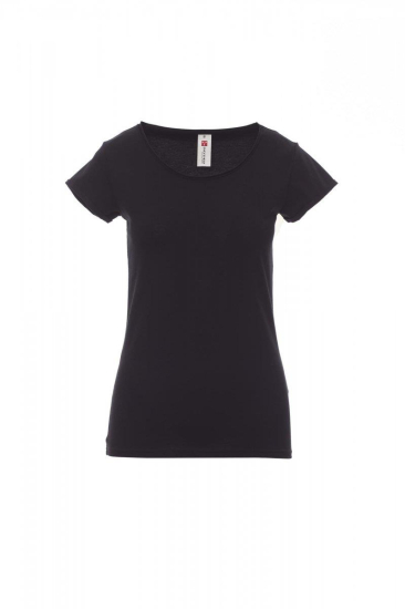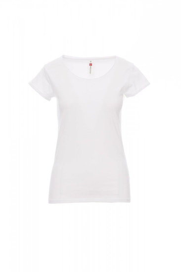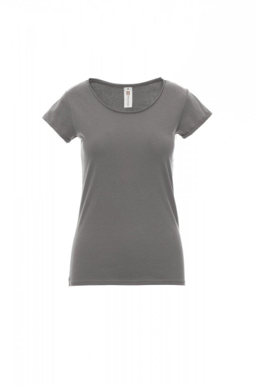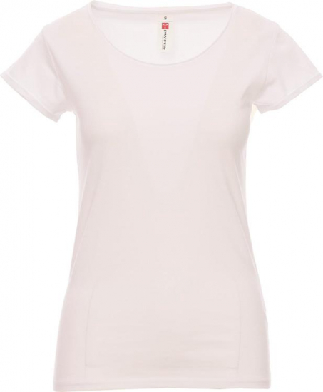 Nauwsluitend dames-T-shirt met korte mouwen met wijde, 1,0 cm verlaagde, ronde hals met ruwe afwerking, nauwsluitende schouders met dubbel gestikte naden aan de binnenkant, korte en nauwsluitende mouwen met smalle, ruw afgewerkte omslag, zijnaden, verwijderbaar label.