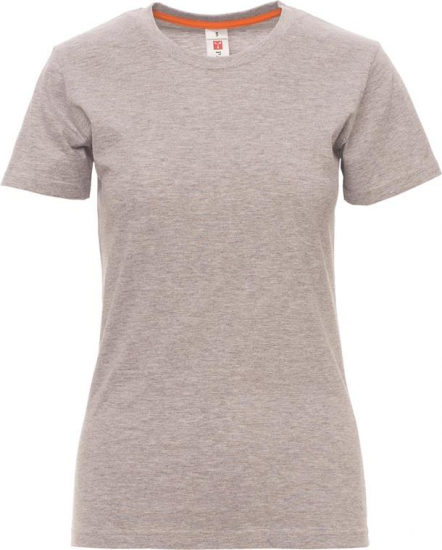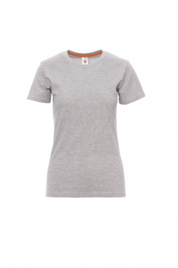 Nauwsluitend dames-T-shirt met korte mouwen en ronde hals, met afgezette geribde halsrand van 1,5 cm van een mix met spandex met stiksel aan de buitenkant, contrasterende versterkingsband van schouder naar schouder zichtbaar aan de binnenkant van de nek, elastische naden, zijnaden.
