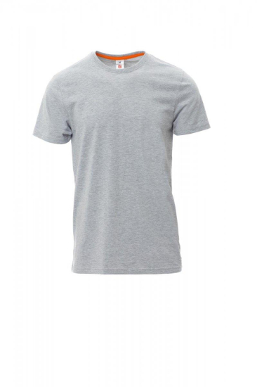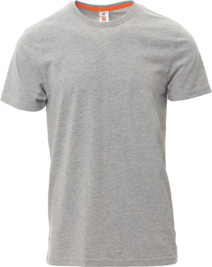 Heren-T-shirt met korte mouwen en ronde hals, met afgezette geribde halsrand van 1,5 cm van een mix met spandex met stiksel aan de buitenkant, contrasterende versterkingsband van schouder naar schouder zichtbaar aan de binnenkant van de nek, elastische naden, zijnaden.
