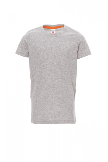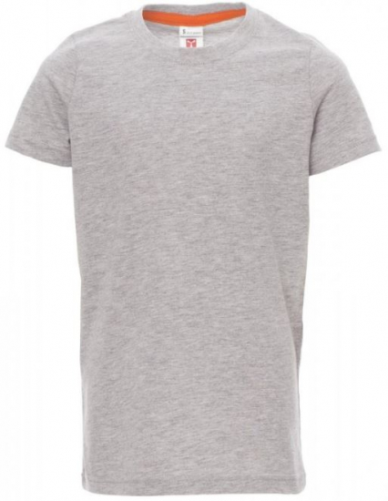Kinder-T-shirt met korte mouwen en ronde hals, met afgezette geribde halsrand van 1,5 cm van een mix met spandex met stiksel aan de buitenkant, contrasterende versterkingsband van schouder naar schouder zichtbaar aan de binnenkant van de nek, elastische naden, rond ontwerp (camouflage-uitvoering met zijnaden)