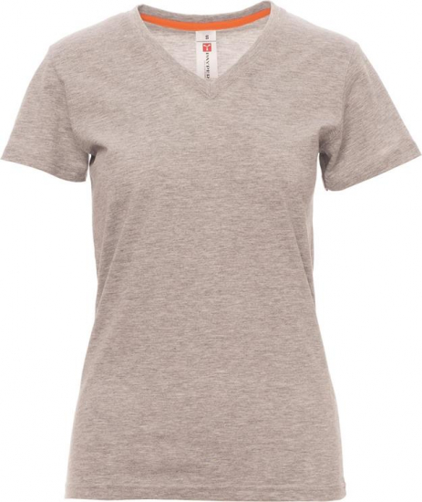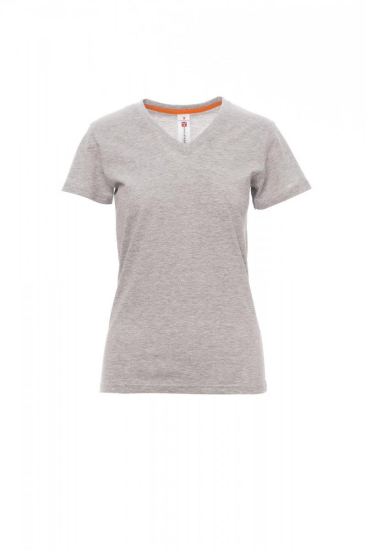 Nauwsluitend dames-T-shirt met V-hals, met afgezette geribde halsrand van 1,5 cm van een mix met spandex met stiksel aan de buitenkant, contrasterende versterkingsband van schouder naar schouder zichtbaar aan de binnenkant van de nek, elastische naden, zijnaden.