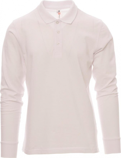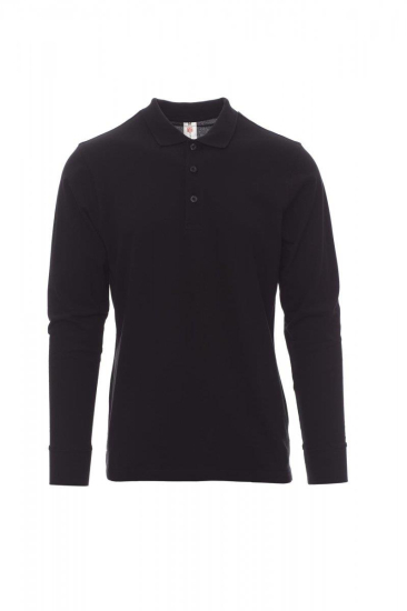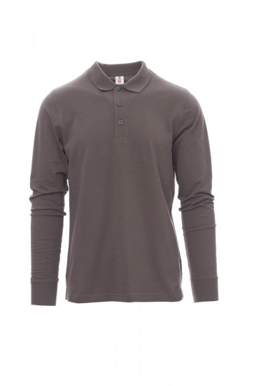 Herenpoloshirt met lange mouwen met 3 parelmoer knopen van dezelfde kleur, kraag en boorden aan de mouwen van ribboord, splitten opzij, stiksels van de hals afgedekt met band in dezelfde kleur, stretch stiksel, verstevigingsband aan de zijkant.