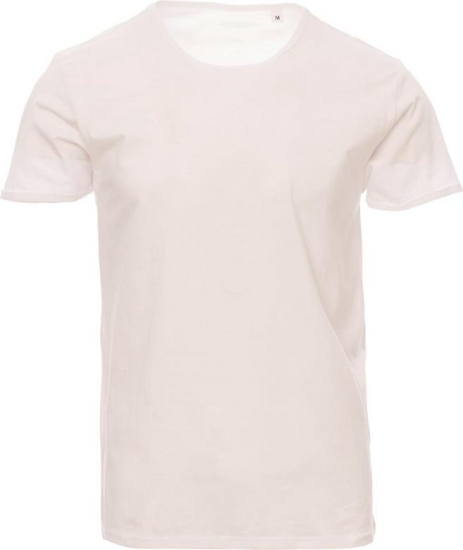 Heren-T-shirt met korte mouwen met iets verlaagde hals, met smalle afgezette halsrand, mouwen met smalle omslag, zijnaden. Geen label